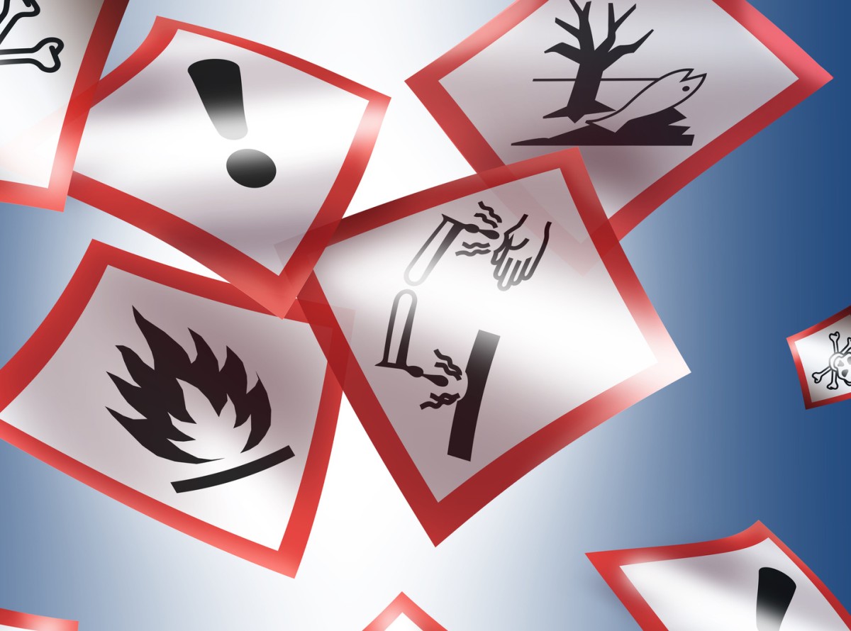 Beispiele für Gefahrstoffkennzeichnung.