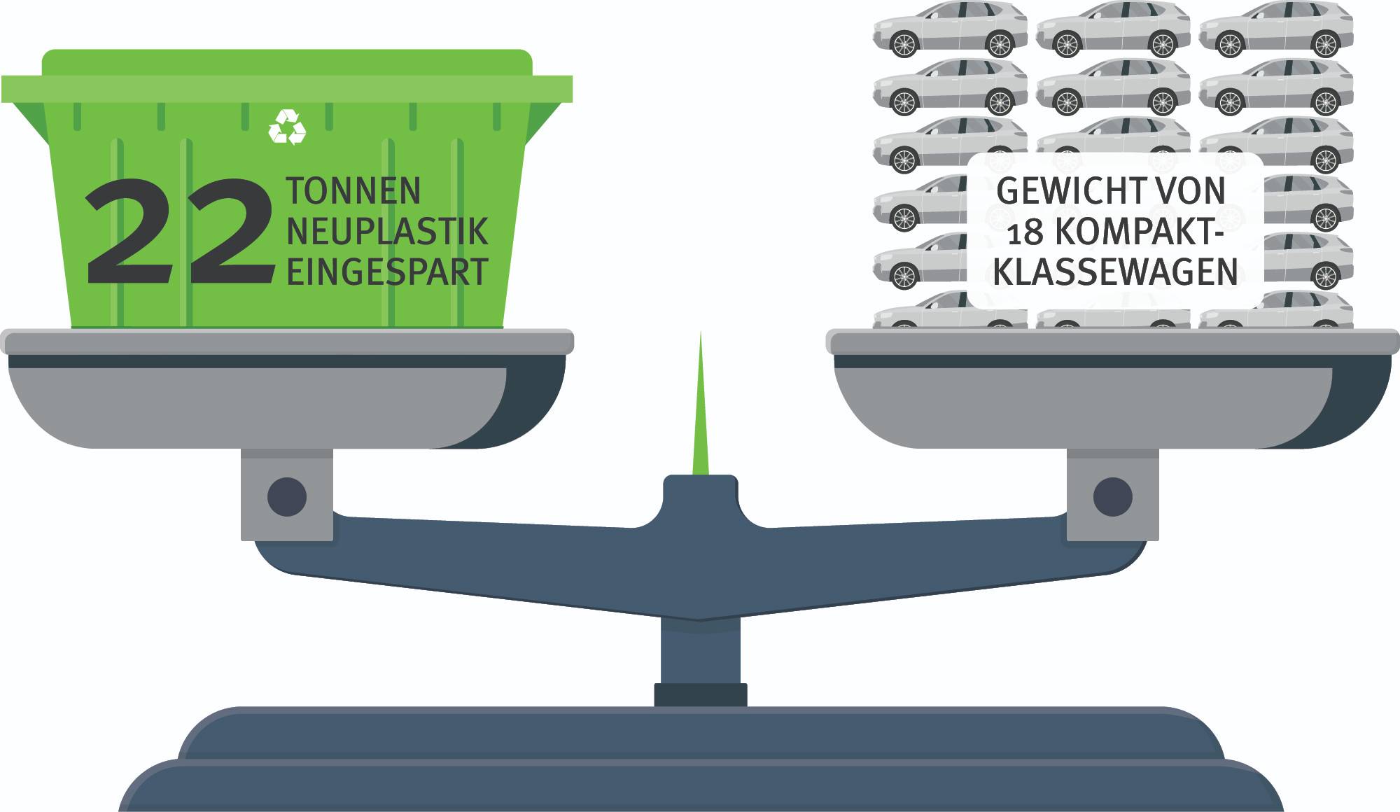 Der gesammelte Kunststoff wird im Entsorgungszentrum gewaschen und verkleinert, so dass bunte Polypropylen (PP) Flakes entstehen. Diese werden eingeschmolzen und zu Granulat verarbeitet, welches letztendlich eine graue Farbe aufweist. TUNAP hat sich aus drei Gründen ausdrücklich für die Verwendung des grauen Rezyklats entschieden: